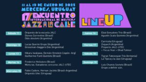 El 17º Encuentro Internacional de Músicos Jazz a la Calle se inicia este sábado 11 de enero de 2025 en Mercedes. El evento se extiende hasta el domingo 19 de enero.