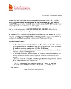 El SUNCA para y se moviliza en todo el país. En el marco del paro parcial convocado para mañana martes del sunca la rama del PEAJE llevara adelante la medida con las siguientes características.