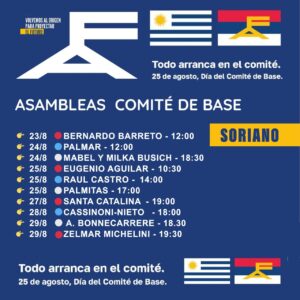 El calendario de asambleas en Soriano es el siguiente: Ya se cumplieron el sábado 23 en  Comité Barreto y también el domingo 24 en Comité de Villa Soriano.