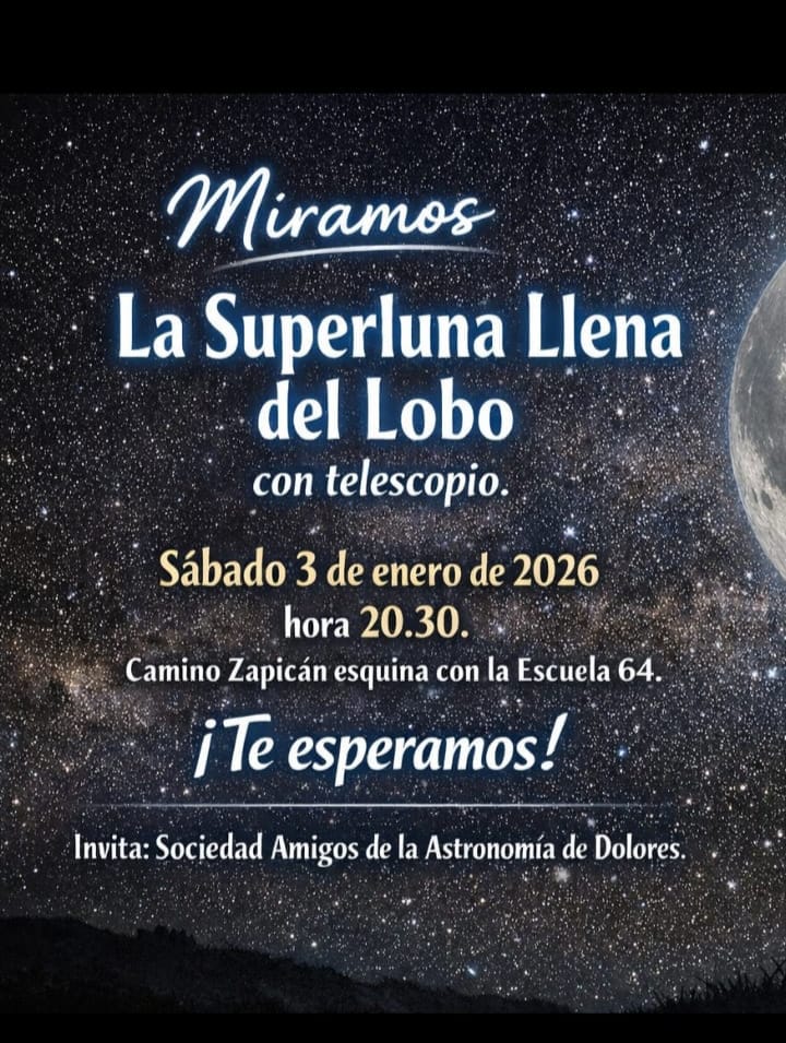 La Sociedad Amigos de la Astronomía de Dolores invita a compartir la visualización de la primera luna llena del año, denominada Superluna del Lobo.