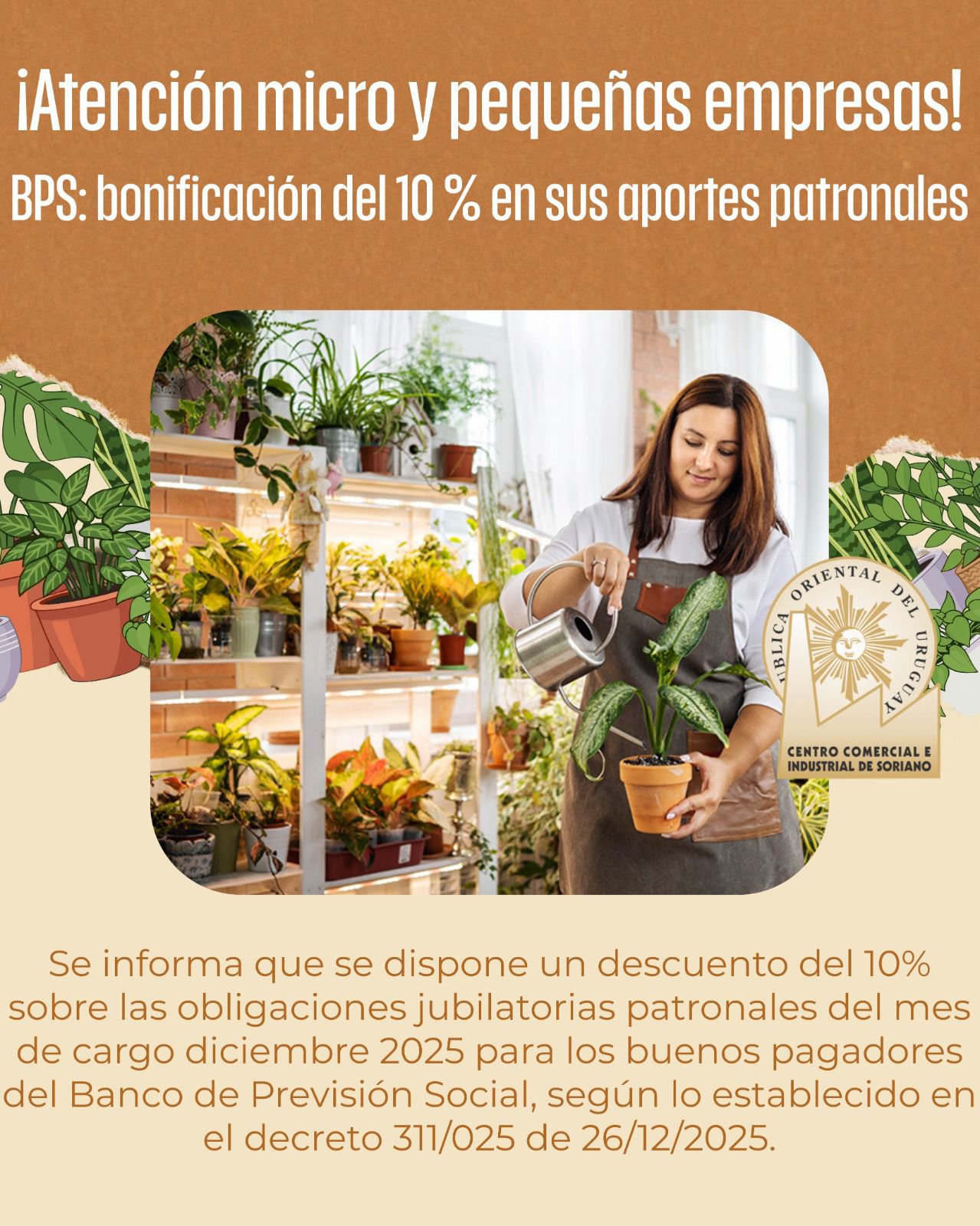 BPS ofrece una bonificación del 10 % en los aportes patronales.