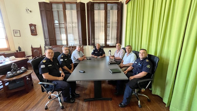Allí mantuvieron una reunión con el Jefe de Policía, Crio. Gral. (R) Luis E. Rodríguez, en la que se dialogó sobre temas vinculados a la seguridad pública en el departamento.