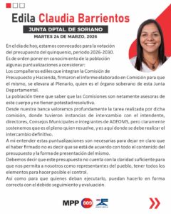 ontinuando con las exposiciones en la sesión de este martes 24 en la Junta Departamental de Soriano,