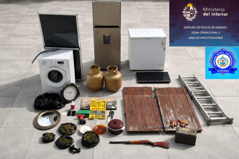En tal sentido, el día 13 de abril de 2026 se dio cumplimiento a orden de allanamiento dispuesta por la Justicia, participando personal del Área de Investigaciones Zona II con apoyo de la Brigada Departamental Antidrogas y Grupo de Reserva Táctica, lográndose la detención de una mujer y un hombre de 21 y 35 años respectivamente, así como la incautación de varios de los objetos denunciados como hurtados, entre ellos: