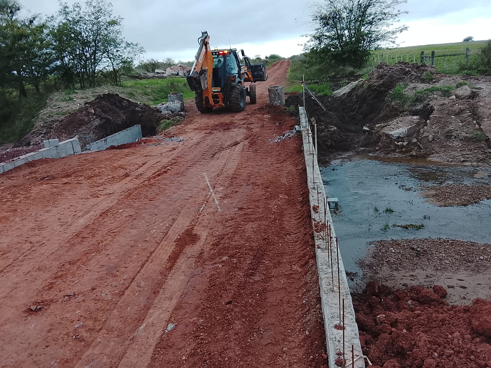 El otro puente donde se trabaja es en camino a Azotea de Vera donde se está aplicando el hormigón para la losa superior de manera de dejarlo en condiciones de transitabilidad.